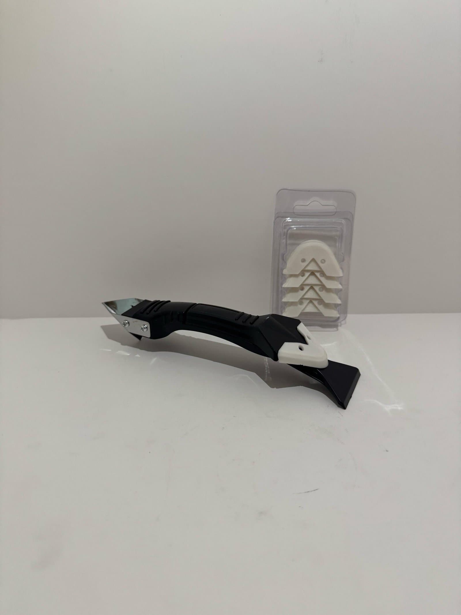 פתרון חכם לניקוי, גירוד ומריחה – מגרד סיליקון איכותי עם חמישה ראשים ניתנים להחלפה לפי הצורך. אידיאלי לניקוי שאריות סליקון, מריחת חומרי איטום, גירוד לכלוך עקשן ועוד.